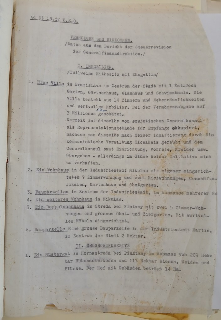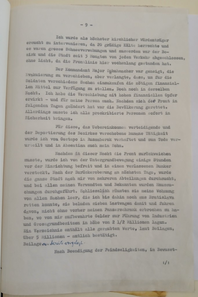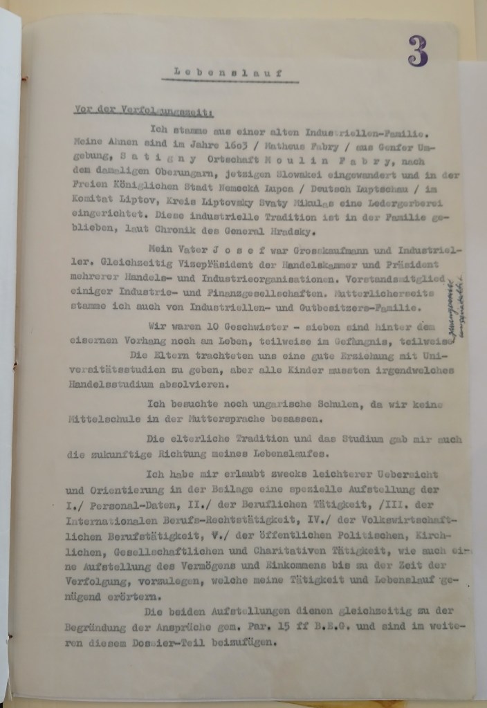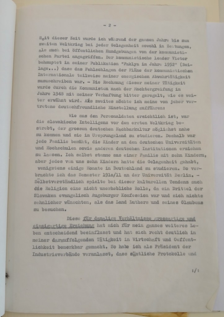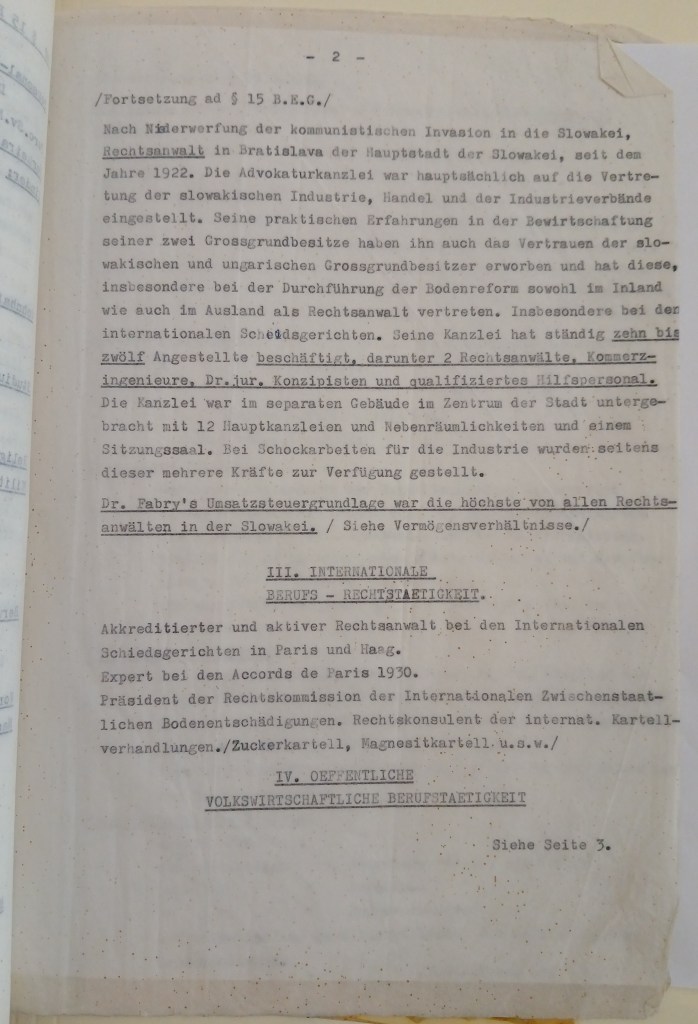 I apologize for only replying to your kind letter of the 7th, but I was in Germany and only returned at the end of last week. I was in Bonn, Stuttgart and Munich and everywhere I was accompanied by memories of my beloved friend Dr. Fábry, who fell in the service of his loved ones. It is only to his genius and extreme dedication that we have something to thank for that results were achieved that none of us, his clients, could even dream of. But what are all the treasures of this world, which can always be replaced, compared to the loss of a beloved husband, father and friend?