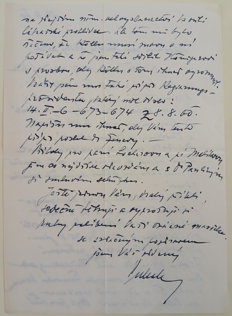 mám za to, že jste již opět v Ženevě a doufám, že Vás svým dopisem neobtěžuji. Doufám také, že jste si po tak namáhavé práci alespoň trochu odpočinul a že zdravotně se cítíte nyní lépe.