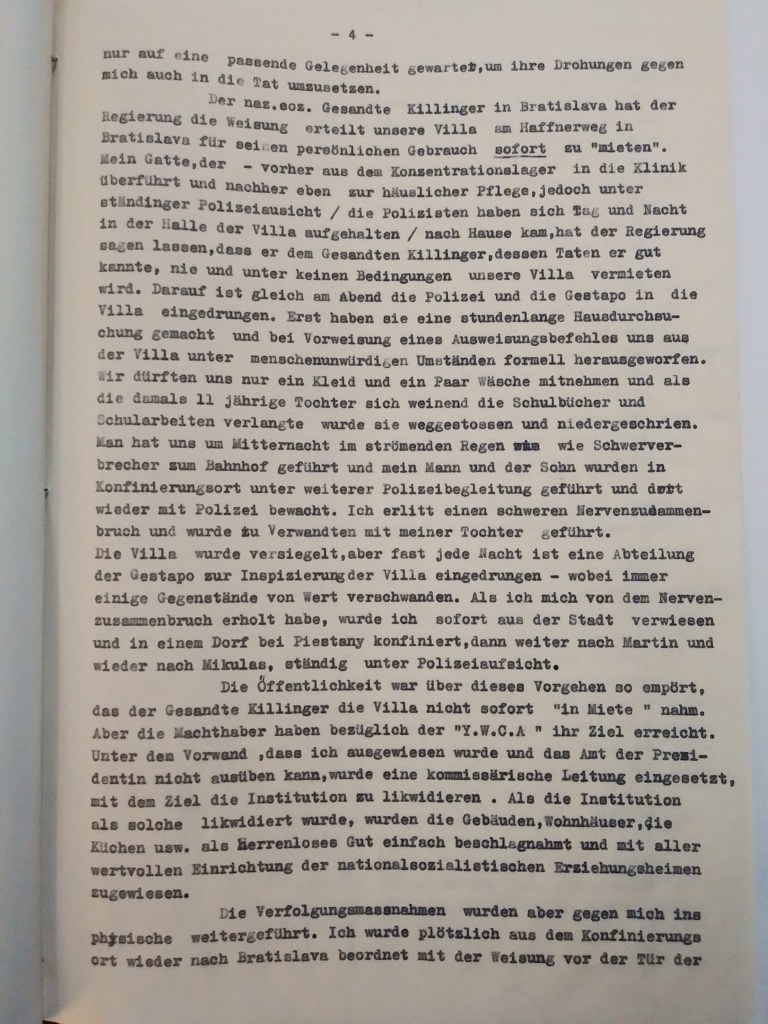 I took part on the board of the Refugee Committee in Zurich and Austria, after most refugees came from Slovakia to Austria, and I had to check very carefully if there were any refugees that had been disguised. I was then elected as President of the Refugee Committee, but on the advice of the doctors treating me I had to adjust this activity, because through this work my health did not improve. Nevertheless, I succeeded in helping assist 1200 refugees in the decisive path of new existence.