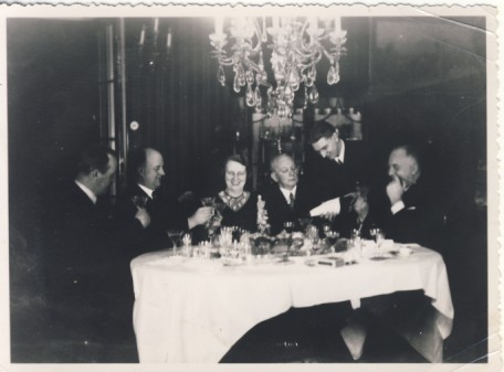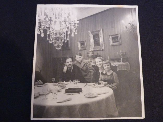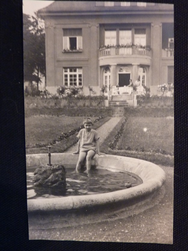 Vlado’s only sibling, sister Olga “Olinka”, arrives home; she was born 5 October 1927, in Bratislava, Czechoslovakia. Their mother, Olga Fabry-Palka, on far right, dressed in black; brother Vlado is on the left, wearing knee socks and black buckled shoes. This photo, and the rest that follow, show the home our family built in Bratislava – it was seized by the Communists in the coup d’état of 1948, handed over as a gift to Russia, and has ever since been occupied as their embassy. You can see recent photos of our home by searching for “Russian Embassy Bratislava”.