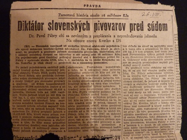 Attacks against Pavel Fabry were made in the communist newspaper PRAVDA, all clippings are from 1948, one is dated by hand 26th of August: