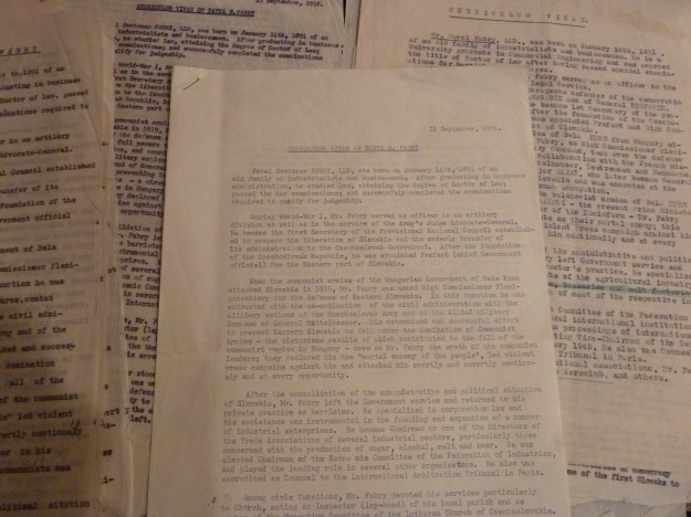 Drafts of Pavel Fabry’s Curriculum Vitae, 11 September 1952, printed here: