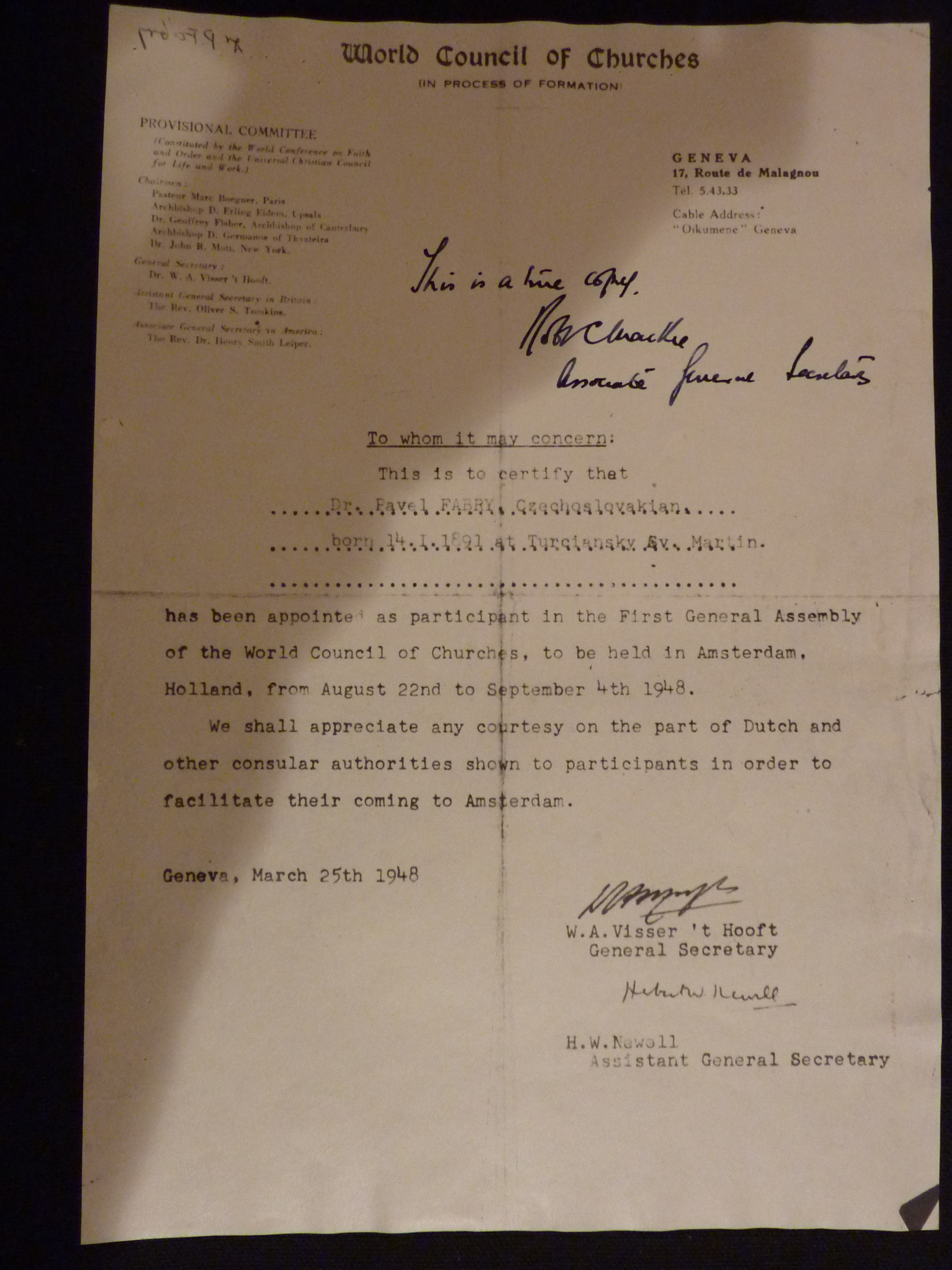 mám za to, že jste již opět v Ženevě a doufám, že Vás svým dopisem neobtěžuji. Doufám také, že jste si po tak namáhavé práci alespoň trochu odpočinul a že zdravotně se cítíte nyní lépe.