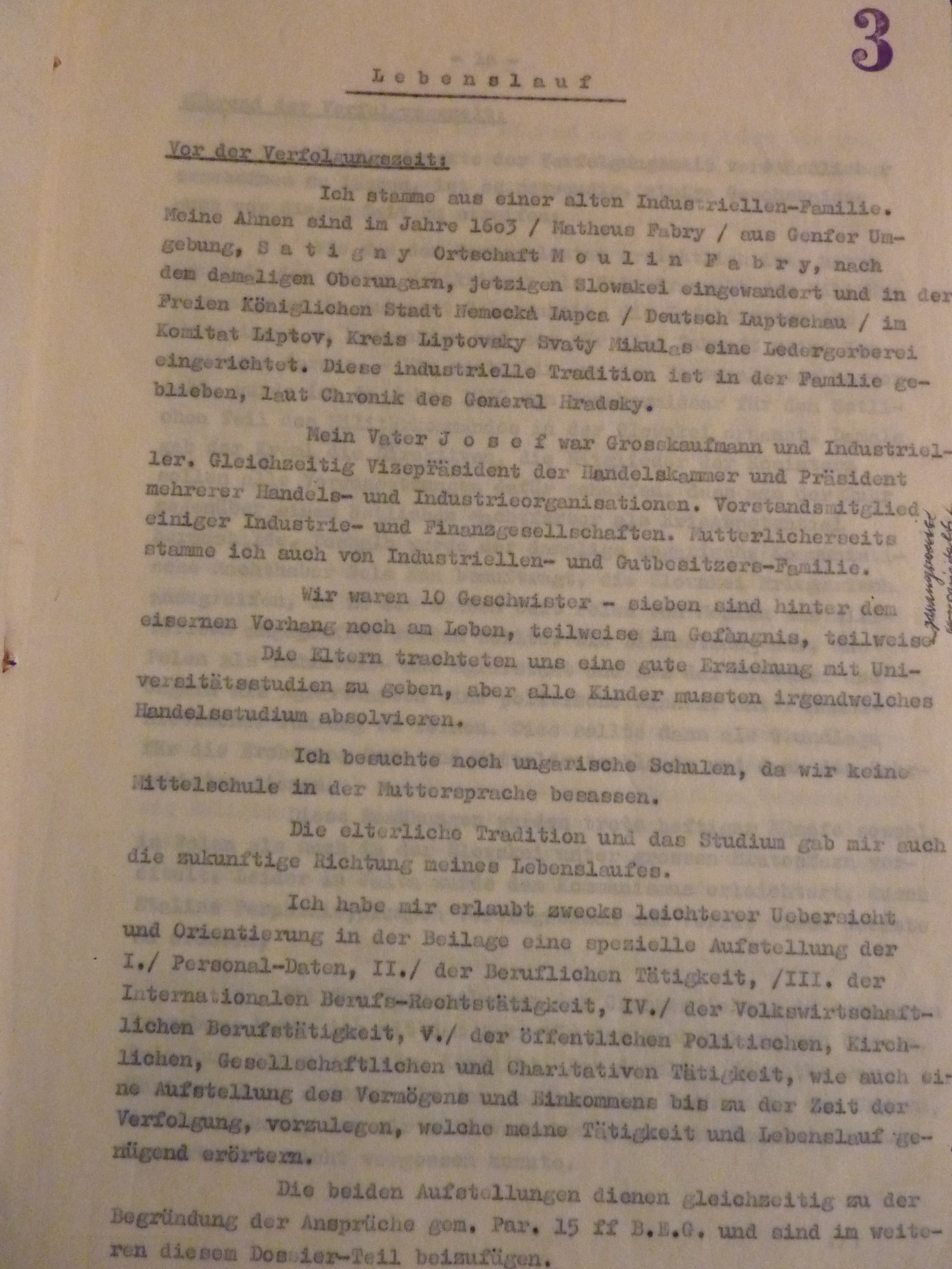 I apologize for only replying to your kind letter of the 7th, but I was in Germany and only returned at the end of last week. I was in Bonn, Stuttgart and Munich and everywhere I was accompanied by memories of my beloved friend Dr. Fábry, who fell in the service of his loved ones. It is only to his genius and extreme dedication that we have something to thank for that results were achieved that none of us, his clients, could even dream of. But what are all the treasures of this world, which can always be replaced, compared to the loss of a beloved husband, father and friend?