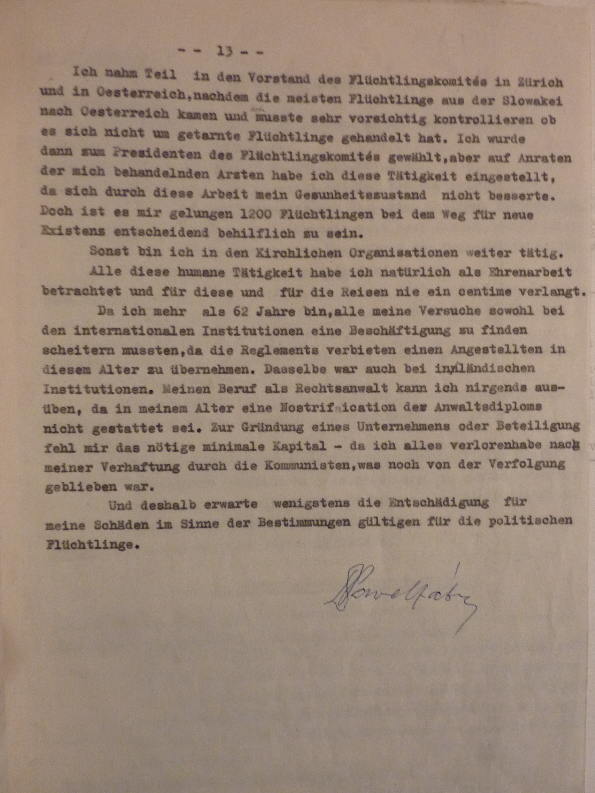 Dr. Höniger received the Regierungspräsident’s letter only on 8.8.60 and sent it to me immediately. I immediately arranged everything necessary and yesterday, 25.8. I already sent Höniger a confirmation from the Home Office that I was a Flüchtling (from) on 1.10.53 within the meaning of the Geneva Convention of 51 and that my residence is in Great Britain. I also went to the German embassy here for a medical examination. But I was told there that Cologne had to apply for it again and I also told Höniger about this, asking that Cologne understand this immediately. I also returned to him the letter from the Regierungspräsident, which had the number: 14.II.-6-673-674 28.8.60. I will write to him immediately to send this letter to you in Geneva.