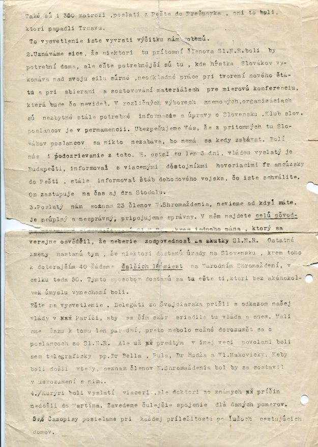 O obsahu Vašeho telegramu a dopisu nás již podrobně informoval přítel Dr. A a nezbývá než Vás obdivovat a Vám za Vaši obětavou práci mnohokráte děkovat. Zdá se, že to teď již dlouho trvat nebude a že vbrzku dojednáte věci definitivně.